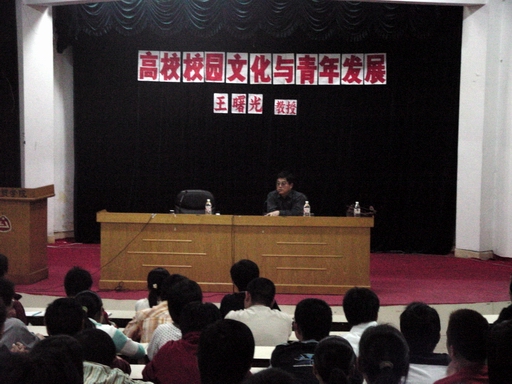 4月19日晚,学院阶梯教师座无虚席,由浙江省团校副校长王曙光教授作的“高校校园文化与青年发展”讲座让在坐的团学干部进一步认识了高校校园文化的内涵与实质,为以后如何和怎样繁荣校园文化开拓了思路。这是院团委为贯彻落实我院第二次“双代会”精神,进一步提高团学干部的业务素质,充分发挥我院团学干部的示范带头作用而举行的2004年春季学期团学干部培训班的第一趟课。