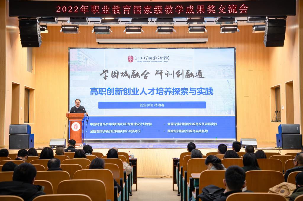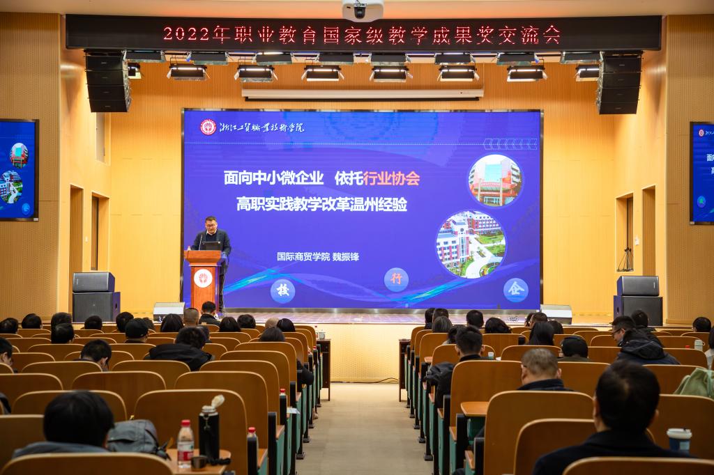 林海春、杨松涛、魏振锋三位获奖成果团队代表分别就《学园城融合 研训创融通:高职创新创业人才培养探索与实践》《深度融合地方特色资源的设计类专业课程思政探索与实践》《面向中小微企业依托行业协会:高职实践教学改革的温州经验》三项成果进行了经验分享。