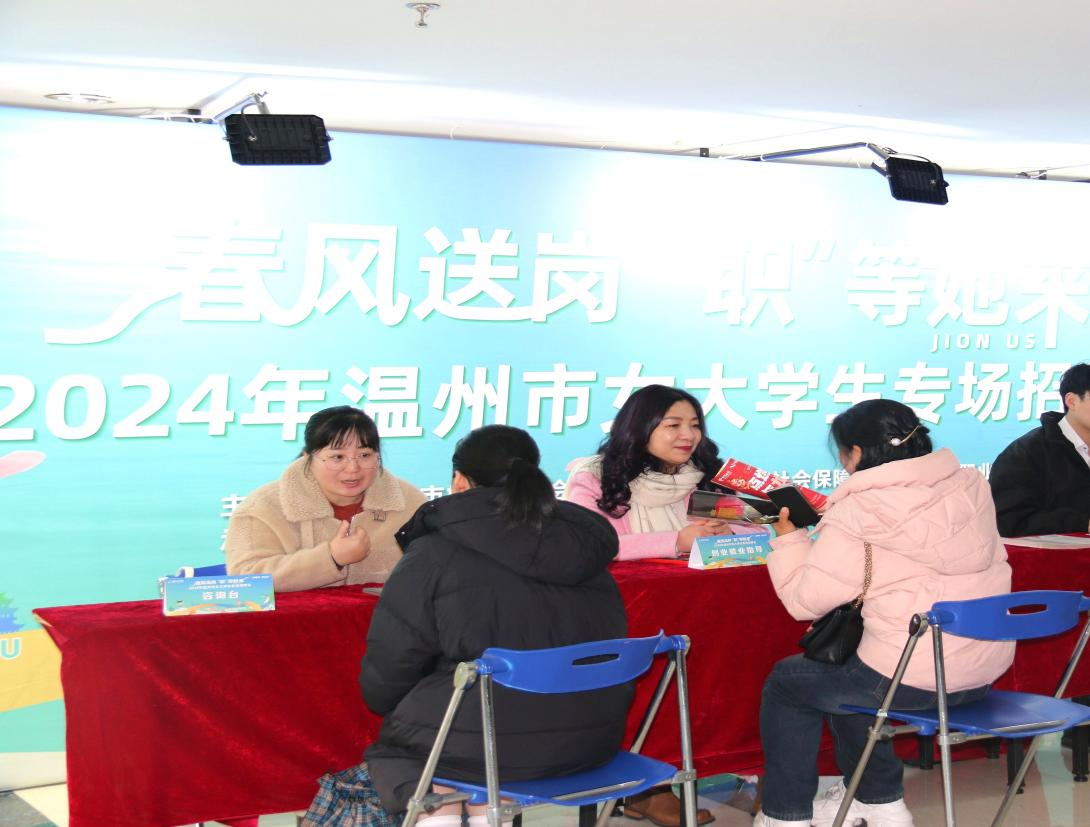 为贯彻党中央及省市关于高校毕业生就业创业工作决策部署,优化女大学生就业环境,拓展女大学生就业渠道,吸引更多优秀女大学生留温实现高质量就业,助力温州强城行动。3月6日,由 、温州市妇女联合会和温州市人力资源和社会保障局联合主办的“春风送岗 ‘职’等她来”2024年温州市女大学生专场招聘会在温州人才市场举行。