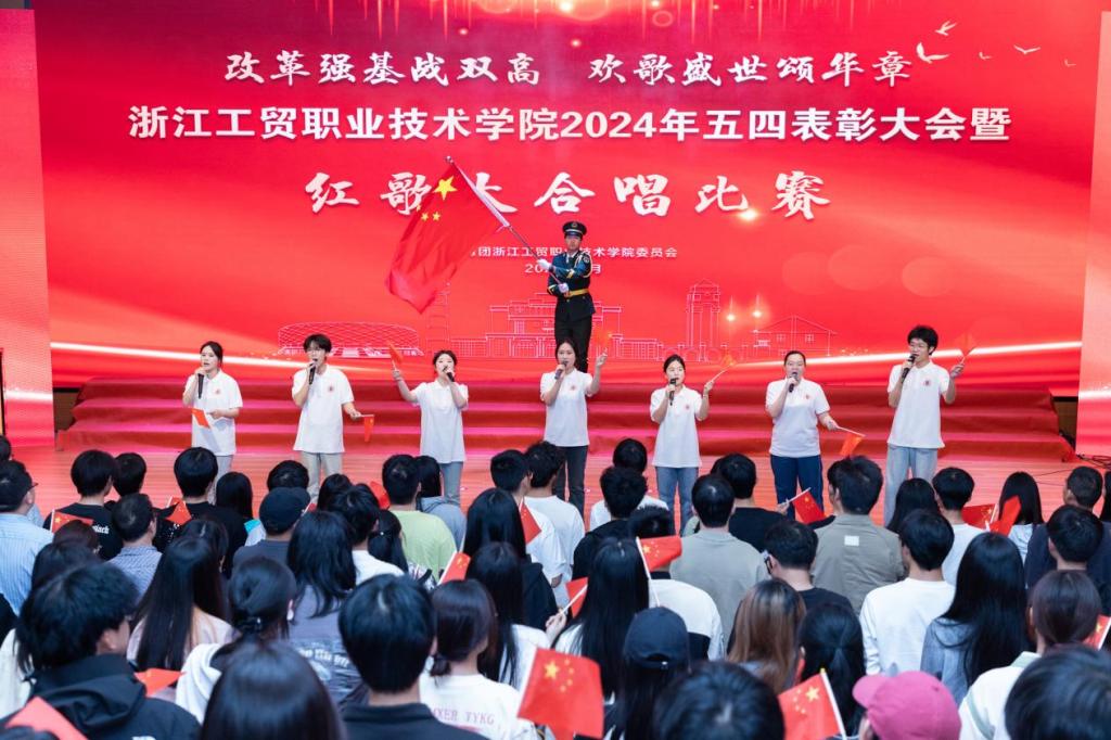 为展现我校学生朝气蓬勃、健康向上的精神风貌,用红色经典歌曲重温我们党的光辉历程,以振奋人心的激昂旋律庆祝新中国成立75周年,激励广大团员青年在实现中华民族伟大复兴中国梦的新征程上奋勇前进。4月27日,学校在瓯江口校区举行”改革强基战双高 欢歌盛世颂华章”2024年五四表彰大会暨五四运动大合唱比赛。学校党委副书记王春柳,学工部部长、团委书记廖文献,各二级学院党总支书记、副书记等出席活动,各二级学院辅导员、参赛学生及师生观众共计500余人参加。