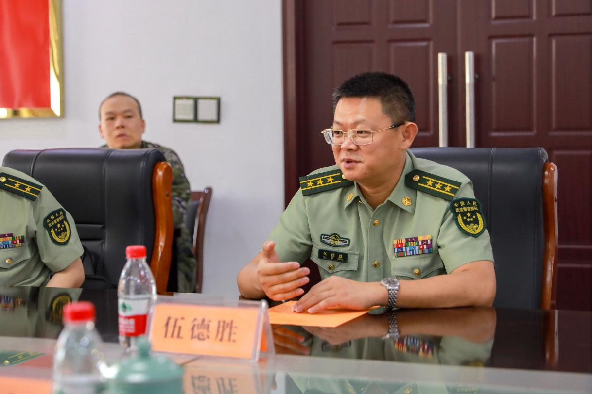 伍德胜政委代表武警温州支队全体官兵对我校的亲切慰问表示衷心感谢,他简要介绍了武警温州支队基本情况,作为前身为中国工农红军挺进师的武警温州支队有着优良传统,也是目前为浙江省连续“先进”时间最长的旅团级支队。并对学校国防教育开展和征兵工作给予了高度评价,双方就进一步加强军校共建、促进军民融合发展等问题进行了深入探讨,并达成了一系列共识。