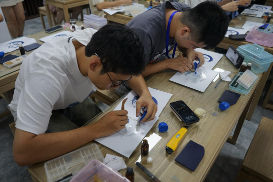 在温州市瓯塑艺术学会,高级工艺美术师郑央凡老师带领学员们体验了国家级非物质文化遗产——瓯塑的魅力。学员们亲手制作了“青年π”logo瓯塑作品,这不仅是对传统艺术的致敬,也是对中华文化深厚底蕴的体验与学习。