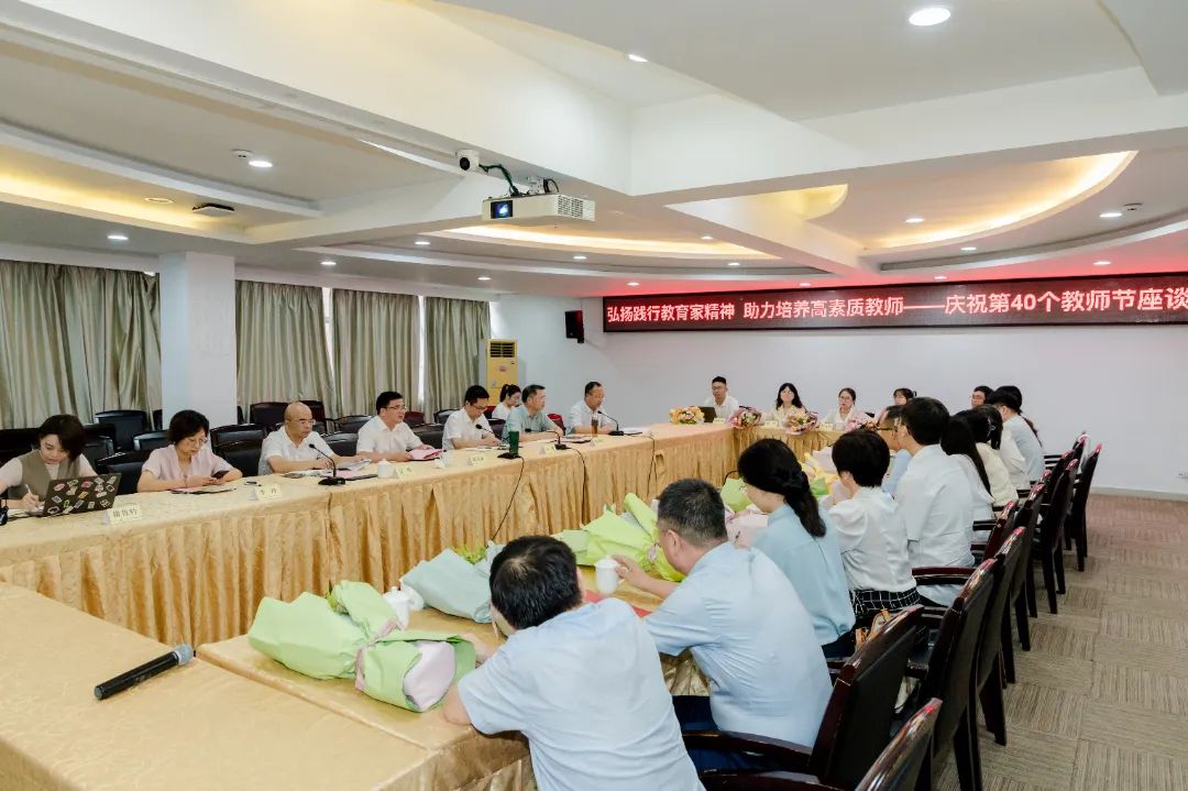 为弘扬教育家精神,加强新时代高素质专业化教师队伍建设,教师节前夕,学校召开庆祝第40个教师节教师座谈会,学校党委书记张志东,校长、党委副书记余闯,副校长汪焰,相关职能部门负责人及教师代表参加。