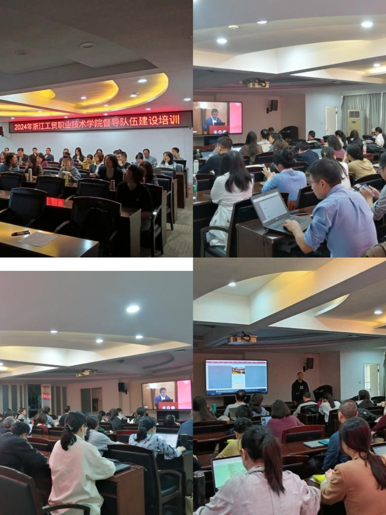 规划质量处处长石娜教授率队校级督导员现场参会,认真聆听专家讲座,积极与全国督导联盟对接交流,并向出席会议的浙江省教育厅相关领导汇报学校的督导工作。培训期间正值周末,60余名二级学院督导员准时在府东路校区技能大楼三楼会议室集中观看线上直播培训,并认真做笔记,积极研讨,学习氛围浓厚。