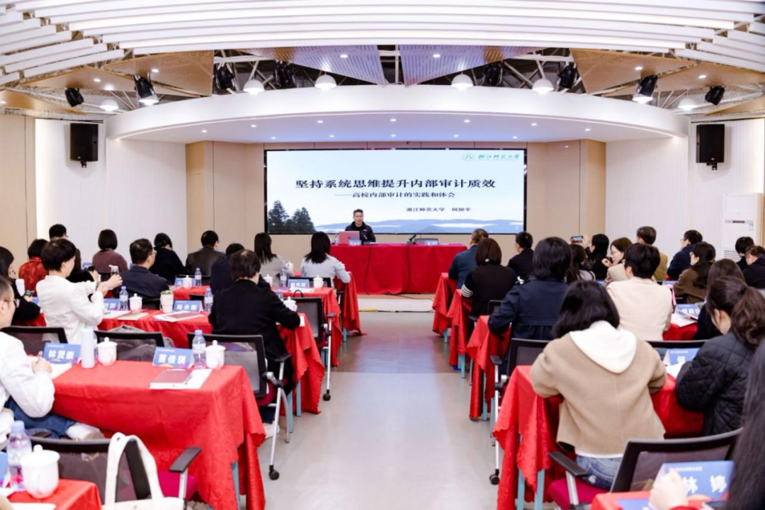 会议邀请了浙江师范大学审计处处长何旭平作《坚持系统思维 提升内部审计质效》专题授课。