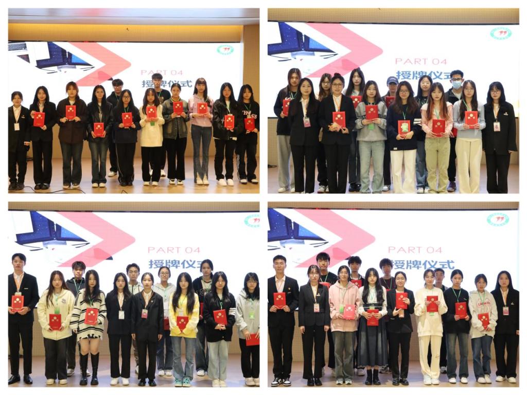 紧接着,开展了授牌仪式。老师和学姐学长们为新干事和22级干事授牌并颁发聘书。这不仅代表着新干事们顺利地通过了考核,正式成为团总支学生会大家庭的一份子,也代表着22级学生干部们从干事身份升级为部长或副部长。颁发聘书意味着学院对每一位干事的认可,同时也承载着对新成员的期望,标志着团学旅途新的一个起点。