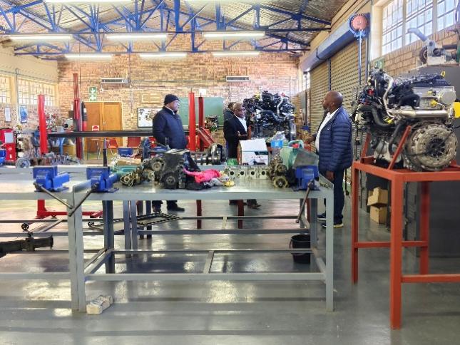 随后Njabulo Mchunu副校长介绍了学院当前的办学困境,主要在:设备不足、教学资源有限、陈旧设备缺乏维修等情况,希望在此方面得到合作。三方关于实验室建设方案、设备引进、专业建设、课程标准、数字资源建设等方面进行讨论。会议结束后在校园经理Ratsilo Maleke带领下,参观了Tosa校区的实训中心和创业中心。