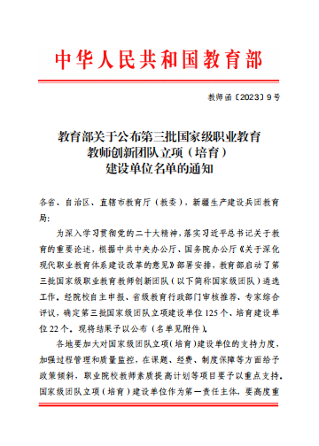 日前,教育部公布第三批国家级职业教育教师教学创新团队立项建设单位名单,我校智能光电制造技术专业团队继第二批国家级电子商务团队后再次成功入选。