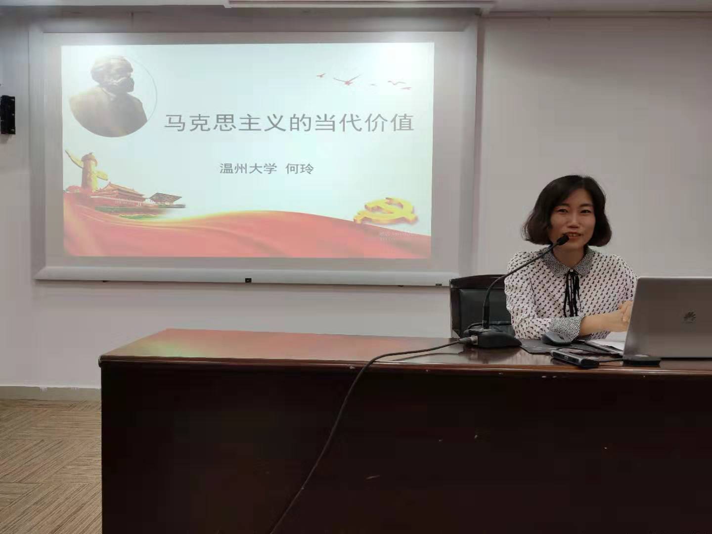 18日上午的集中学习邀请了温州大学马克思主义学院何玲老师授课,她以《马克思主义的当代价值》为题,用熟悉的“朋友圈”带领我们认识了一个有血有肉的马克思,也从马克思的个人经历为我们分析了马克思主义到底在坚持什么,到底是为了什么。